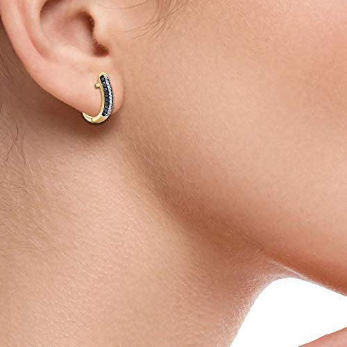 Black Diamond Huggie Hoop Earrings in 10K Gold