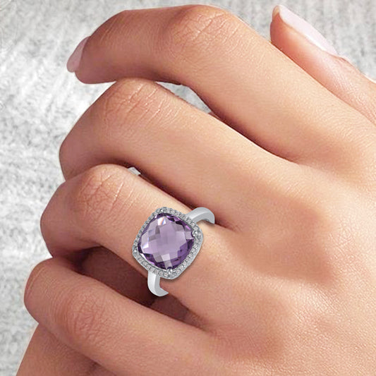 0.07 CT Diamond & Cushion-Cut Natural Amethyst Halo Ring in 10KT Gold