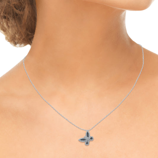 Black Diamond Butterfly Pendant Necklace in 10K Gold
