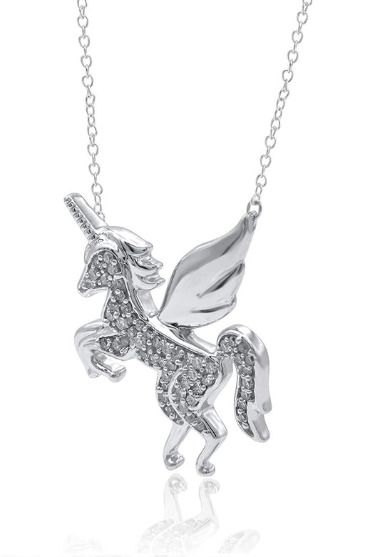 Flying Unicorn Horse Pendant Necklace in 10K Gold