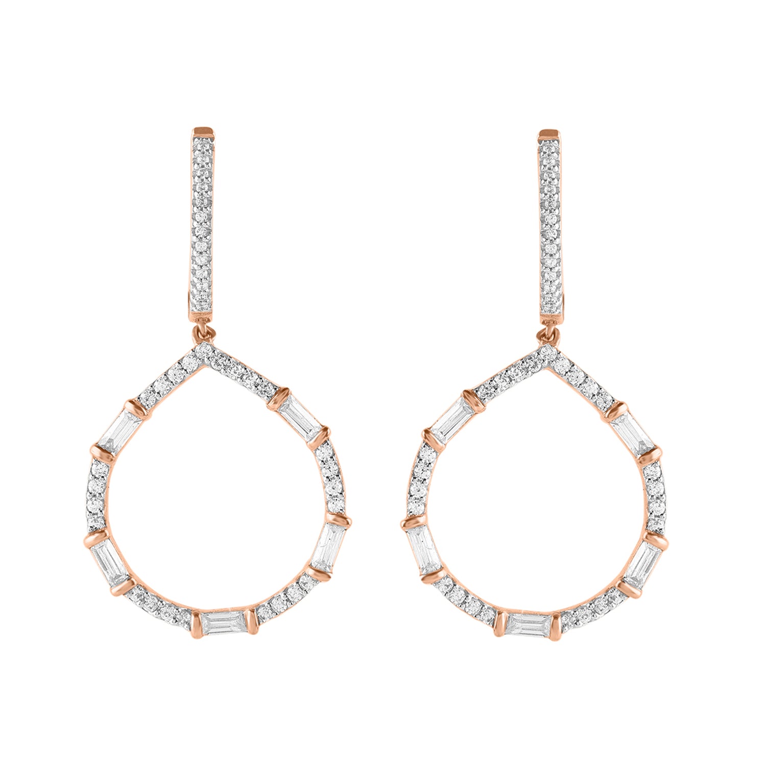 0.33 Ct Round & Baguette Diamond Art Deco Drop Earrings in 10K Yellow Gold