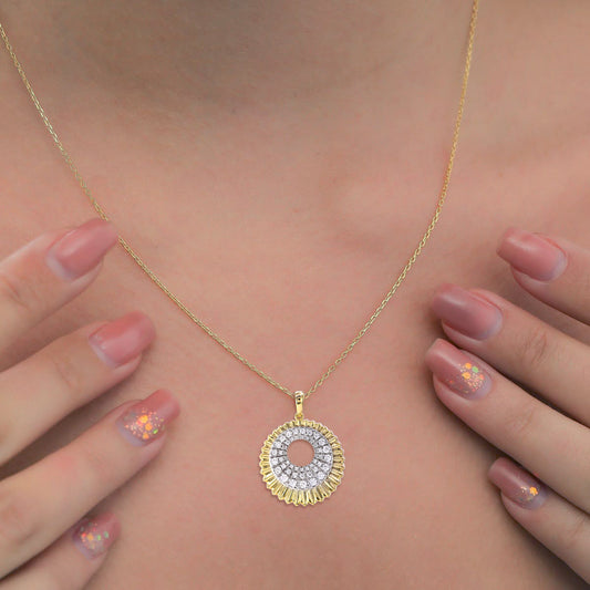 Abstract Disc Halo Pendant Crafted in 14KT Gold