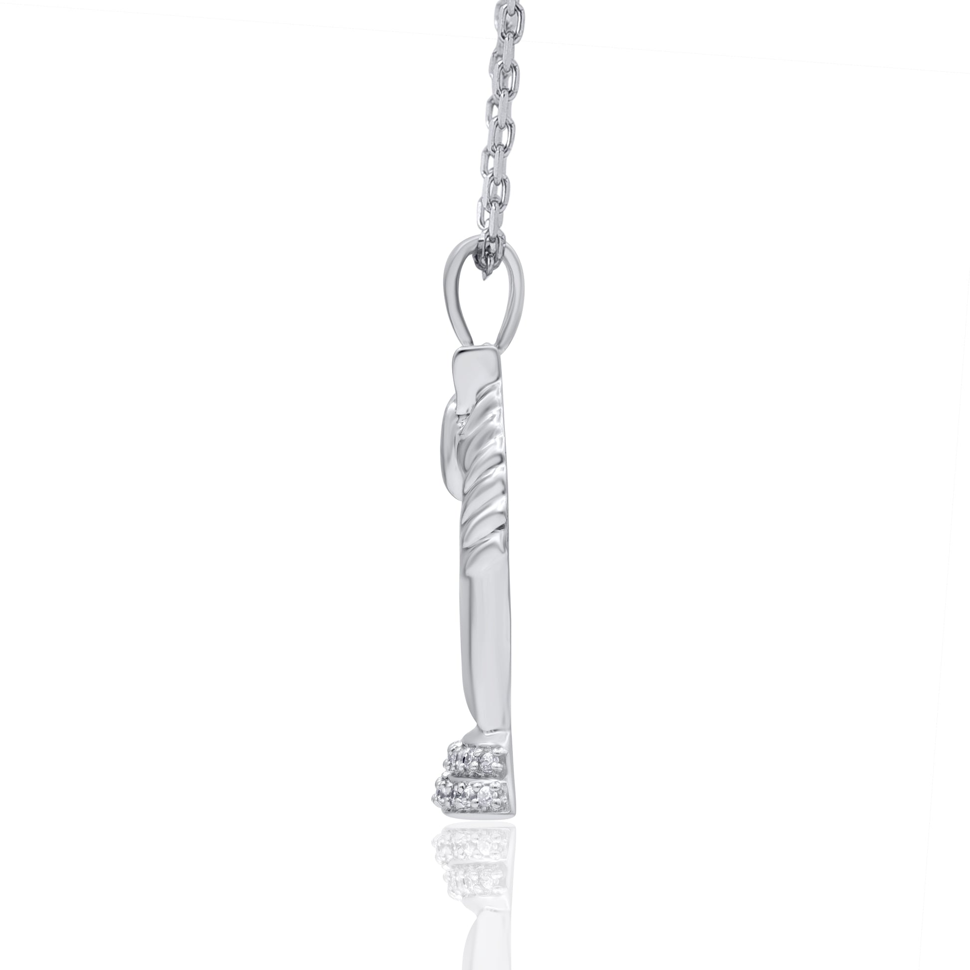 The stylish knight chess necklace is crafted in 10KT gold and features 22 accent diamonds totaling 0.03 carats. Graded G-H in color and I1-I2 in clarity, the diamonds delicately enhance the knight design, symbolizing strategy and strength.