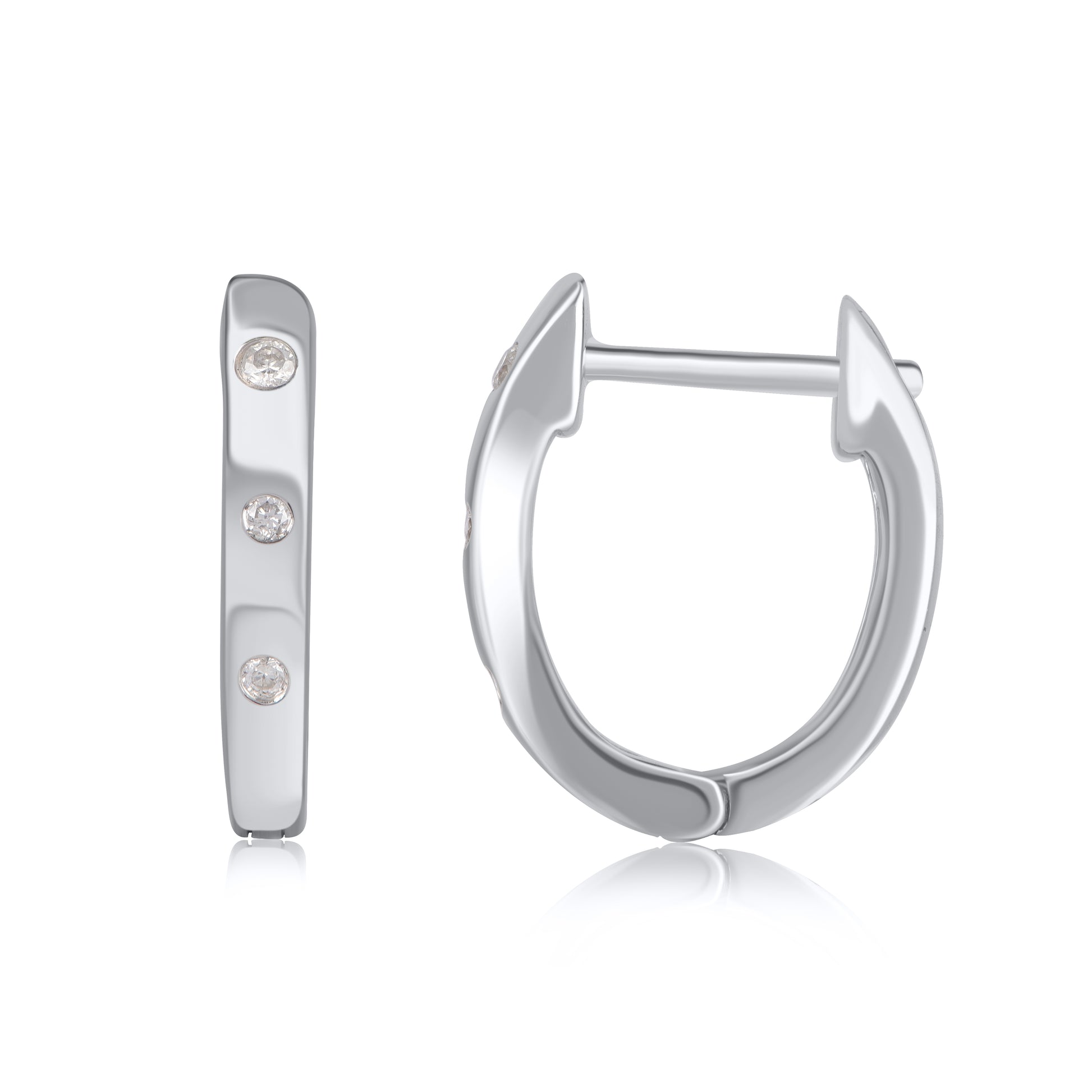 These elegant hoop earrings are crafted in 10KT gold and feature 6 accent diamonds with a total weight of 0.04 carats. Graded G-H in color and I1-I2 in clarity, the diamonds add a subtle yet radiant sparkle to the hoop design. These earrings secure comfortably with a hinged postback.